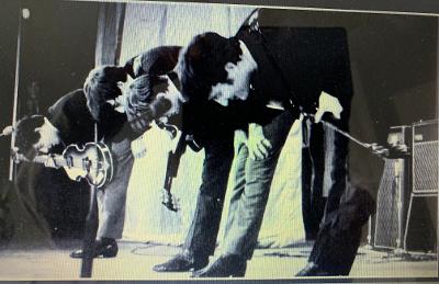 The famous bow down at The Royal Command Performance at the Prince of Wales Theatre in London, in the presence of the Queen Mother and Princess Margaret. November 4th, 1963.